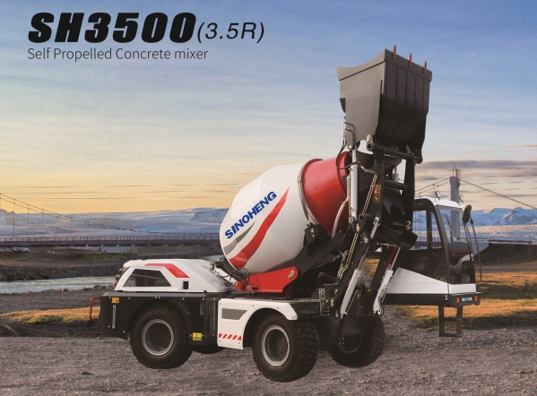 The SH 3500 Self-Propelled Concrete Mixer is designed for higher efficiency and durability in heavy-duty concrete production. It features a larger 5150L mixing drum, offering a higher output of up to 3.5 cubic meters per batch. Its reinforced chassis and 8500kg operating weight provide superior stability on rough terrain. The YCD4J22G 116HP diesel engine and advanced piston-type hydraulic system deliver powerful, consistent performance. Equipped with a 128L fuel tank, enhanced cooling system, and high-pressure cleaning pump, the SH 3500 ensures longer working hours, easy maintenance, and outstanding reliability for large-scale construction projects.